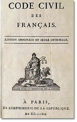 Der „Code civil“, eines der bedeutendsten Gesetzeswerke der Neuzeit, wird 1804 von Napoleon Bonaparte in seinem Machtbereich eingeführt. Das Gesetzbuch zum Zivilrecht ist noch heute in Frankreich in wesentlichen Teilen gültig.
