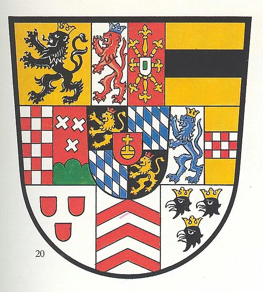 Von seinem Vorgänger Karl Theodor (1724–1799) übernahm der bayerische Kurfürst Max IV. Joseph (1756–1825) alle Bilder in sein Wappen und fügte zusätzlich zwei Abzeichen von Territorien hinzu, die seiner wittelsbachischen Linie gehörten. Das Wappen vereinigte somit symbolisch die Gebiete aller Familienzweige der Wittelsbacher.
