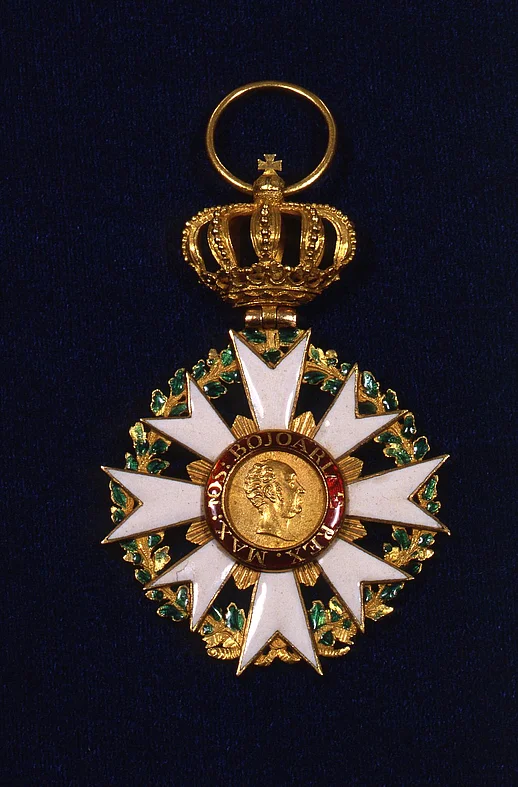 Mit dem Verdienstorden der Bayerischen Krone wollte König Max I. Joseph die Leistungen nichtadliger Staatsbürger und verdienter Ausländer würdigen. Dies war neu. Das Ritterkreuz zeigt die Rückseite des achtstrahligen, weiß emaillierten Kreuzes mit dem dahinter liegenden Eichenkranz. Auf dem Mittelschild ist das rot umrandete Porträt des Stifters, König Max I. Joseph, zu sehen. Die Inschrift lautet "Max: Jos: Bojoariae Rex". Die Rückseite nennt das Motto des Ordens: "Virtus et honos" (Tugend und Ehrhaftigkeit). |
