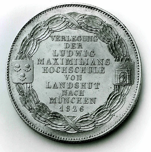 Geschichtskonventionstaler auf die Verlegung der Ludwig-Maximilians-Universität von Landshut nach München (1826)