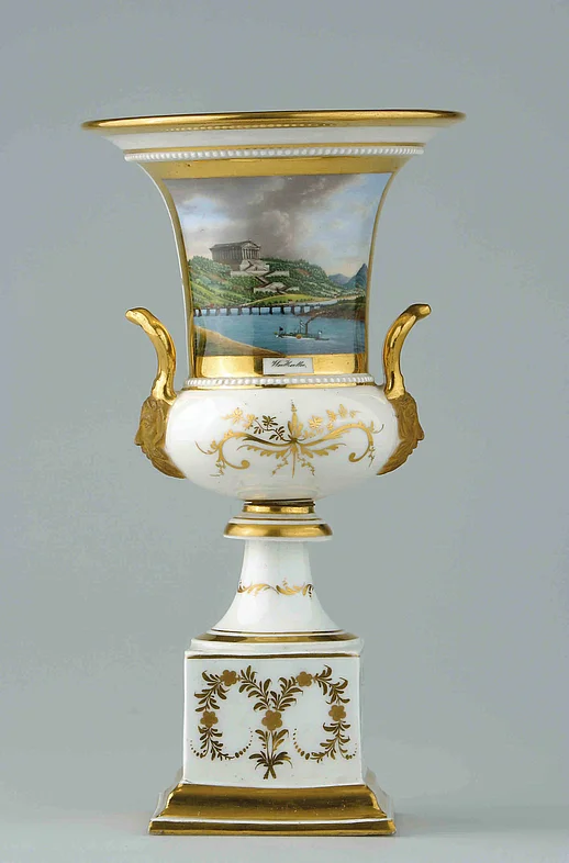 Manufaktur unbek. Hartporzellan, teilweise vergoldet, in zwei Teilen gebrannt und verschraubt 24,7 cm (H) |