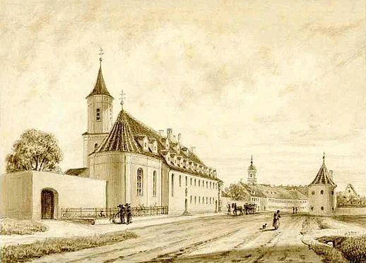 Kloster (Krankenhaus) der Barmherzigen Brüder zu St. Wolfgang in Neuburg a.d. Donau (ca. 1860)