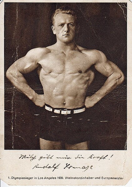 Mit seiner Goldmedaille im Olympischen Dreikampf (Drücken, Reißen und Stoßen) wird Rudolf Ismayr 1932 in Los Angeles zu einem der populärsten deutschen Athleten. Bei der Eröffnung der von den Nationalsozialisten für ihre Propaganda missbrauchten Spiele 1936 in Berlin spricht der gebürtige Landshuter den Olympischen Eid und ergreift dabei statt der Olympischen Fahne die Hakenkreuzfahne. Im anschließenden Wettkampf gewinnt er Silber im Mittelgewicht.